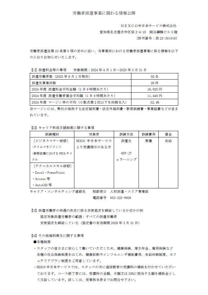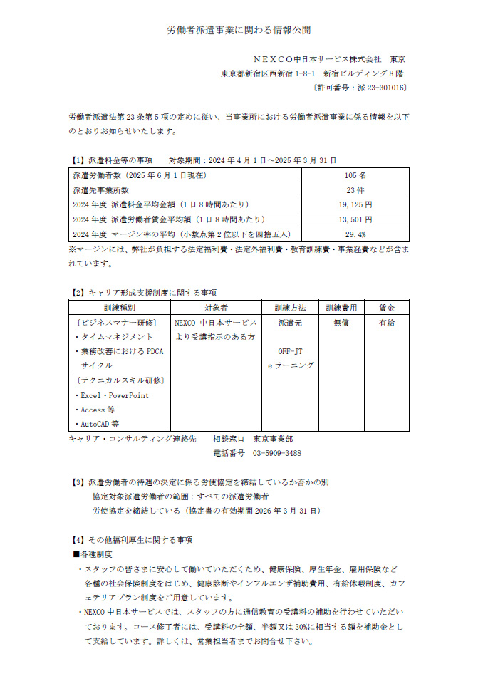 労働者派遣事業に関わる情報公開